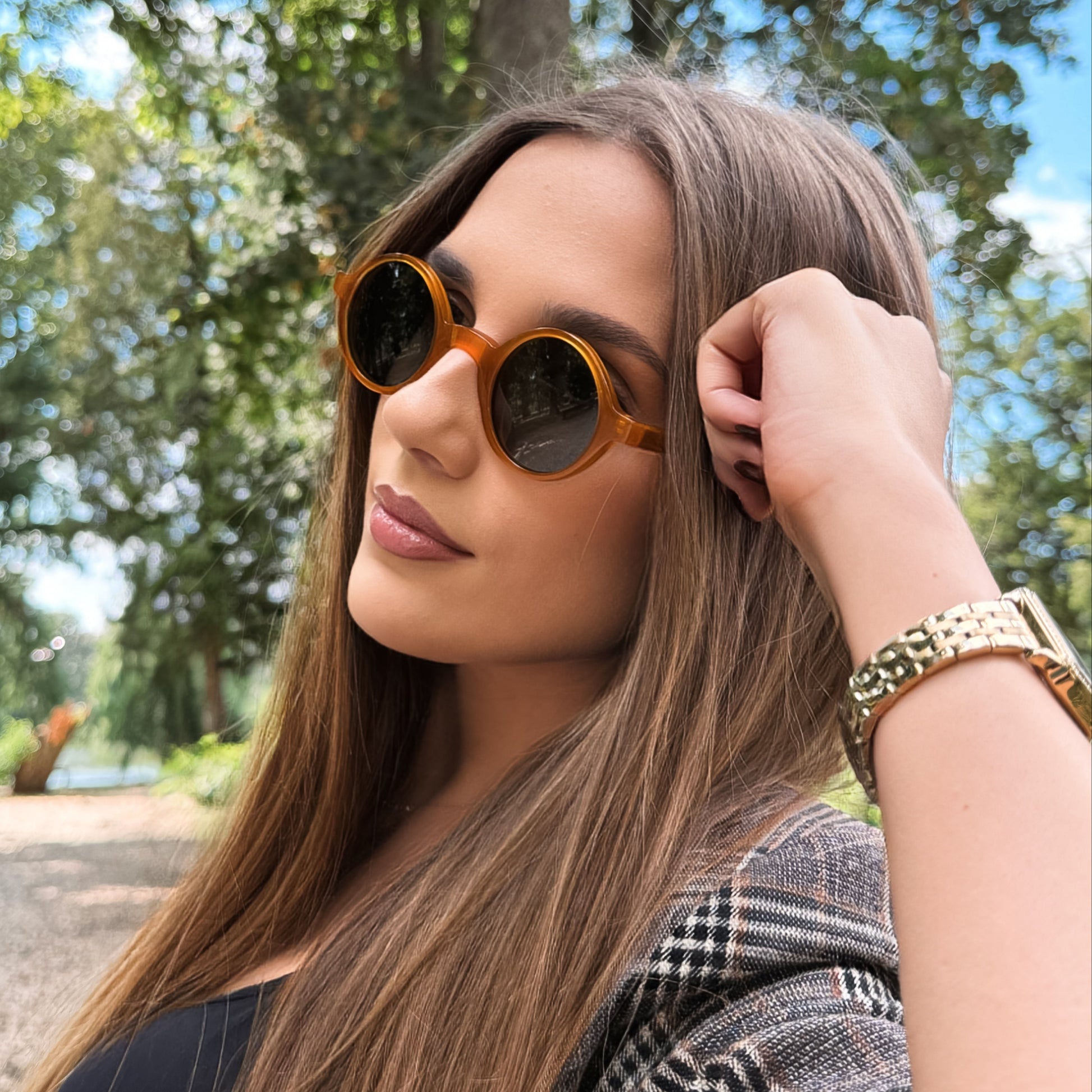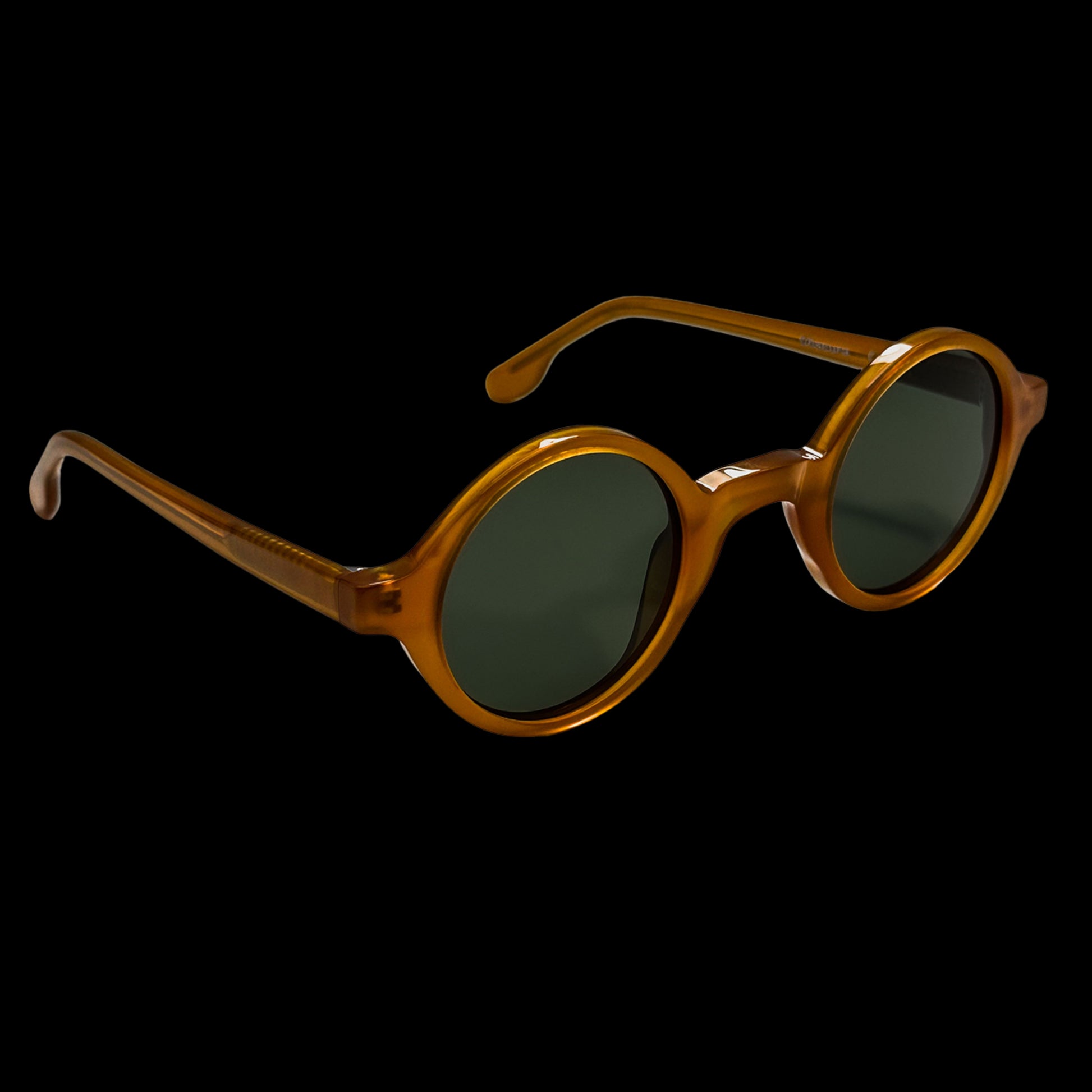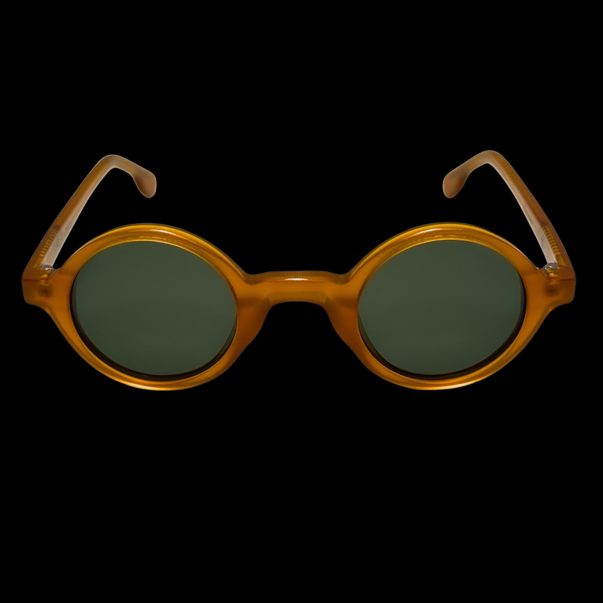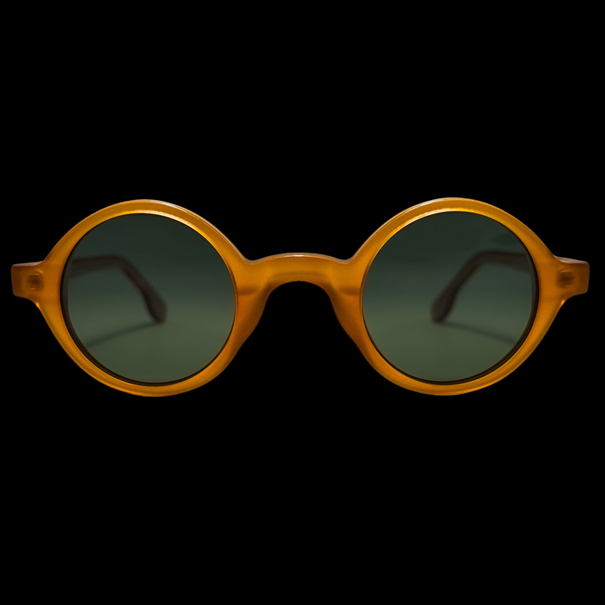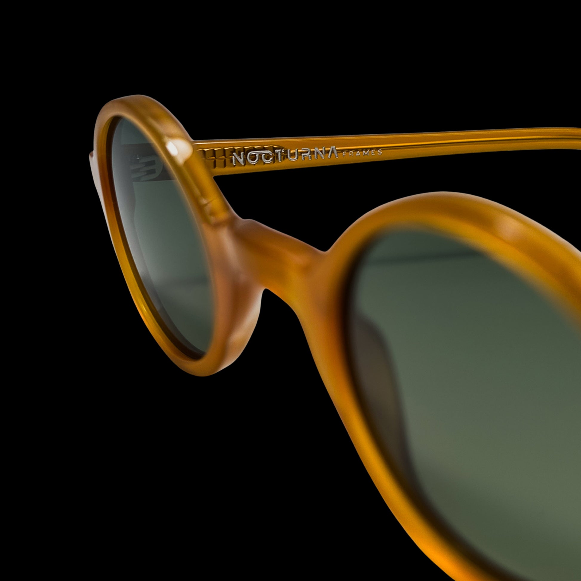Handcrafted from Mazzucchelli 1849 acetate - a plant-based material made from cotton fibers and wood pulp - the frame reveals subtle depth through its amber-tone while maintaining structural balance. A hidden lead-free copper core reinforces the temples, paired with calibrated hinges for fluid movement. Gray TAC polarized lenses with full UV400 protection soften glare while preserving clarity.
