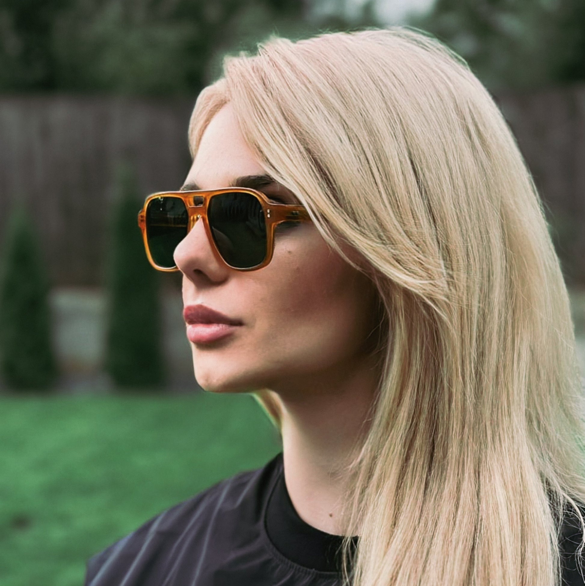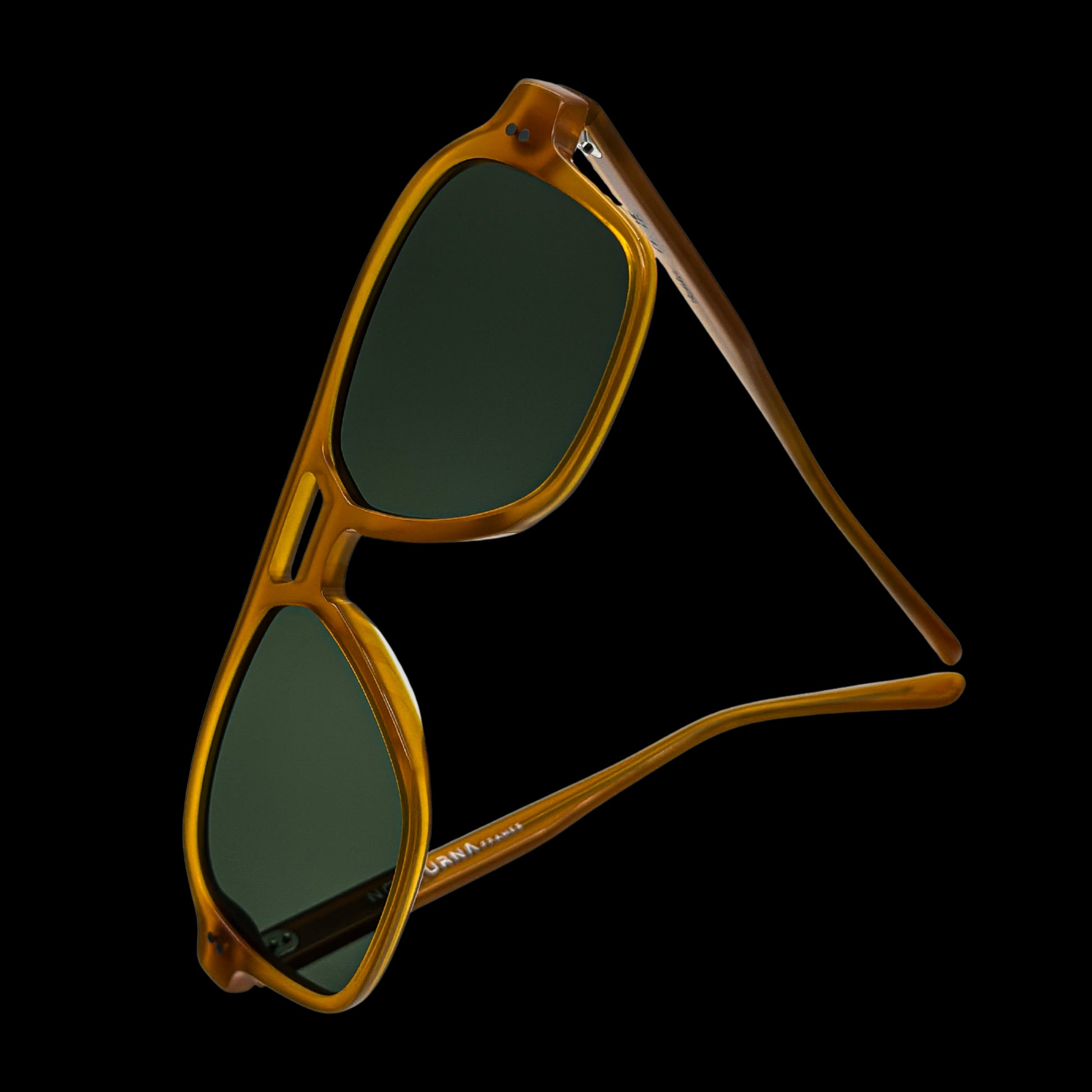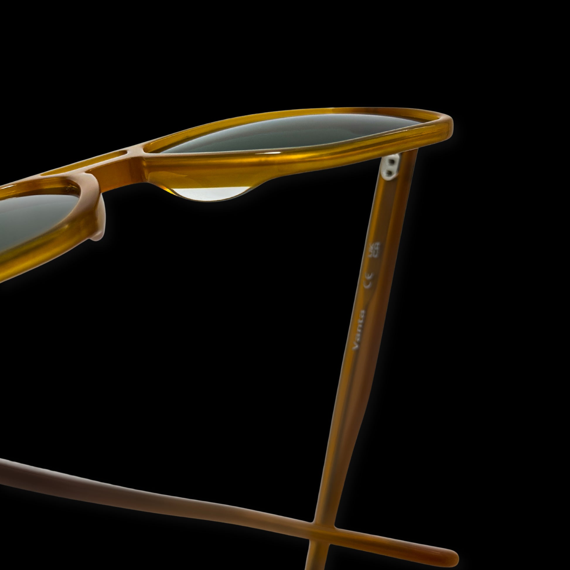 In Vanta Amber, silent authority carries a golden undertone. Handcrafted from Mazzucchelli 1849 acetate - plant-based, biodegradable, made in Italy - the amber finish reveals depth through light rather than absence. The bold geometry remains uncompromised, while polarized lenses with full UV400 protection cut glare and preserve clarity.